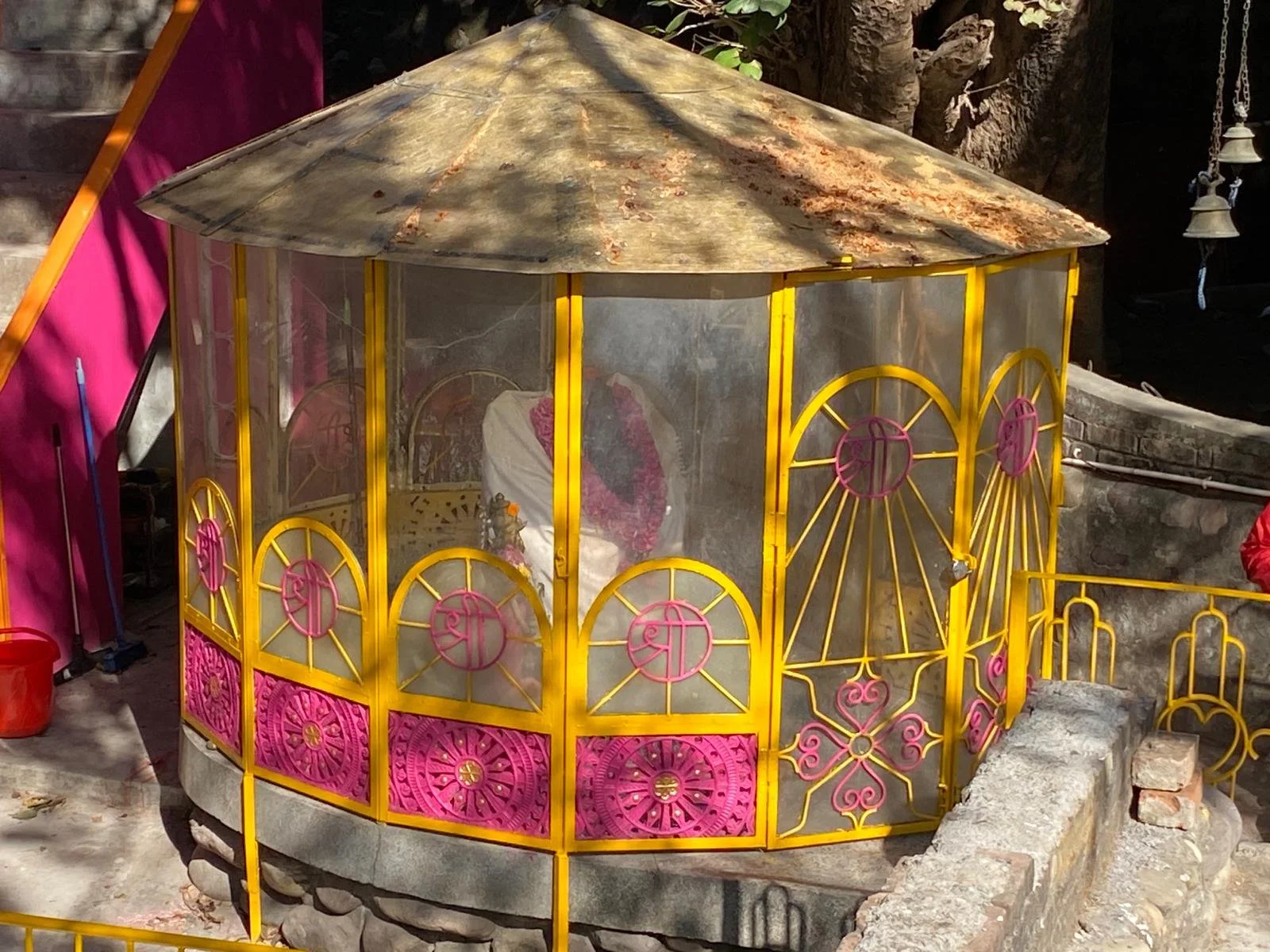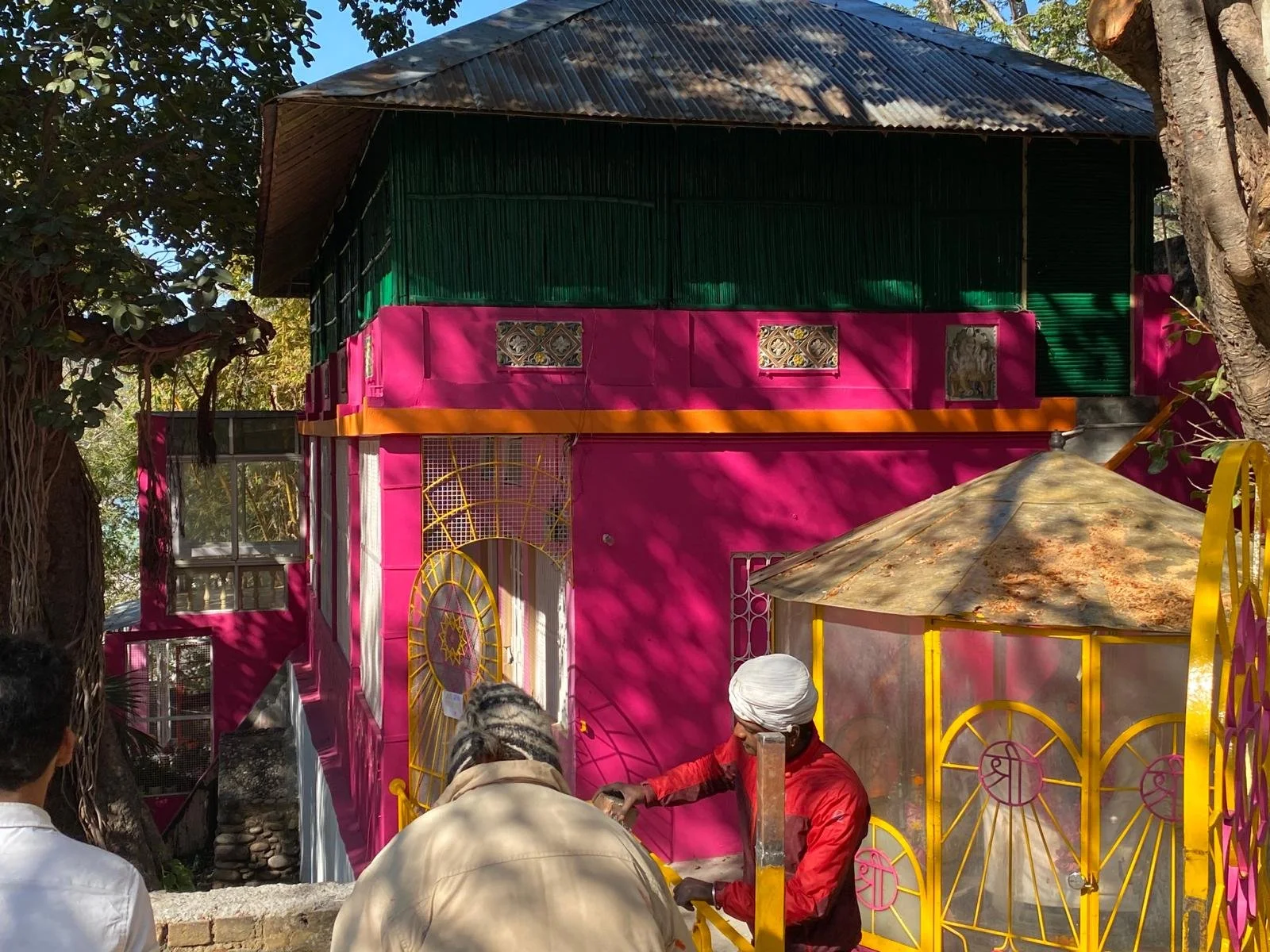 Cleaning Murtis in ShantiMayi’s garden. Karuna and Dharma cleaning the windows of the Ganesh-Mandir.