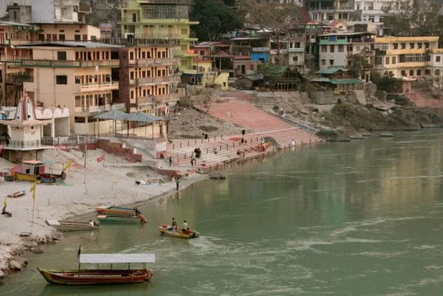Today Laxmanjula has become a meeting place for people from all over the world. There is a kind of spiritual festival ambience that goes on here. In that way, it has become a quirky kind of town. Not so long ago, Laxmanjula was a very small and long-abandoned village: few people lived here. It has quickly grown and now holds a huge spread of population, ashrams, temples, ghats on the Ganges, interesting shops, every kind of visitor one can imagine, assorted restaurants, guest houses, apartments and hotels. It’s a very bustling place. And yet, there are beautiful quiet places along the Ganges where one finds a peaceful meditative calm. Sitting anywhere along the Ganges, alone or with friends, offers a completely different world… far away from the stir of the busy streets.